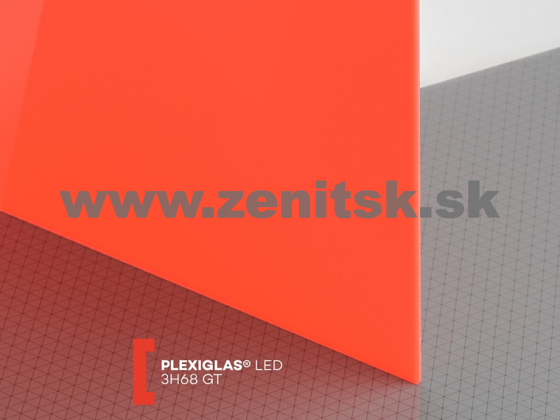 Červené akrylátové dosky Plexiglas LED 3H68 na nasvetľovanie LED diódami červenej farby. Dosky sú špeciálne vyvinuté predovšetkým pre svetelnú reklamu; materiál je vysoko odolný proti UV žiareniu a poveternostným vplyvom. Obe povrchové strany týchto dosiek z plexiskla sú hladké a vysoko lesklé, pri dodávke sú kryté silnou ochrannou fóliou. Široké použitie v reklame, nábytkárstve či dizajne.