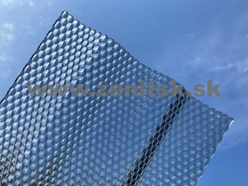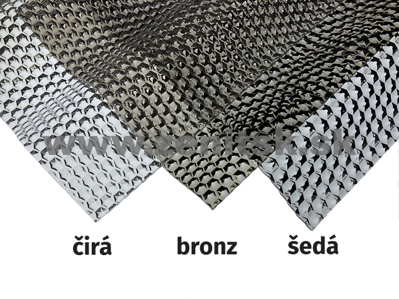 Šedé polykarbonátové vlnité dosky Suntuf 76/18 s dizajnovou štruktúrou na povrchu v tvare včelích plástov (označované tiež diamant/diamond) sú luxusným materiálom na zasklenie rôznych prístreškov, pergol, zvislých stien, státie pre autá a pod. Materiál je veľmi robustný - má hrúbku 2,8 mm. Extrémne vysoká odolnosť proti nárazu zaručuje, že dosky sú prakticky nerozbitné a tým veľmi bezpečné. Jednostranný UV filter zabraňuje starnutiu a poškodzovaniu dosky slnečným žiarením. Vlnovky z polykarbonátu majú výborné vlastnosti, ktoré zaručujú zachvovanie rovnakých mechanických a optických vlastností týchto dosiek po mnoho rokov. Na tento typ dosiek poskytujeme podľa podmienok výrobcu záruku 10 rokov bez obmedzenia veľkosti krúp!