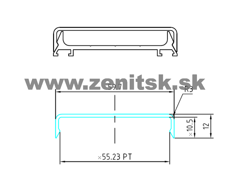 Zaklapávacia krycia hliníková lišta hnedý elox (horná časť)